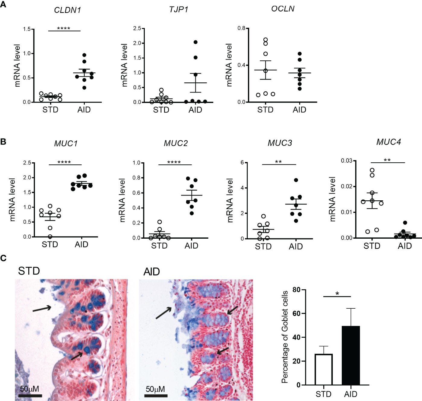AID restored GB integrity by promoting expression of tight junction proteins and mucins