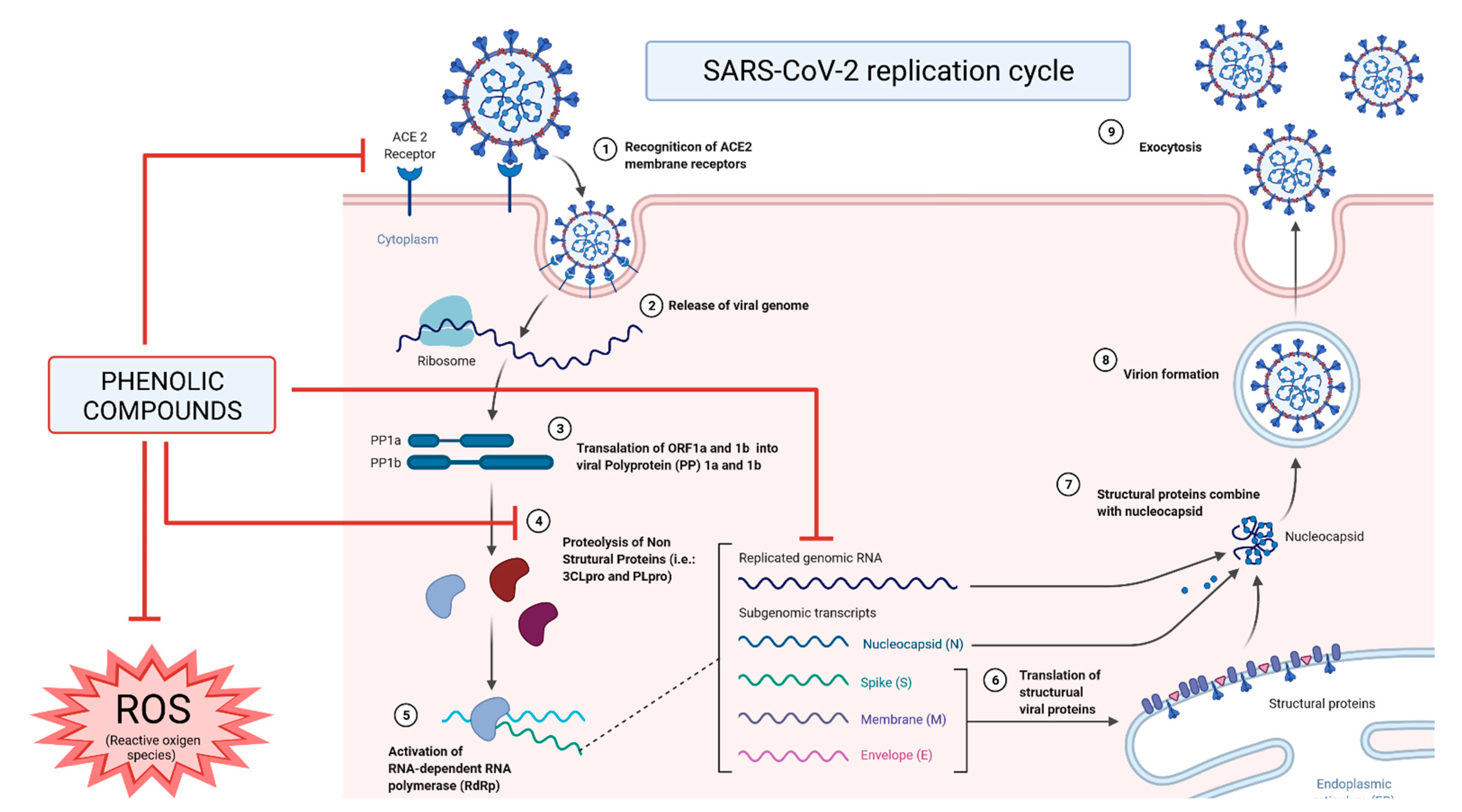 Mechanisms of action and inhibition of phenolic compounds against severe acute respiratory syndrome of coronavirus 2 (SARS-CoV-2) on its replication cycle and in the host’s immune response