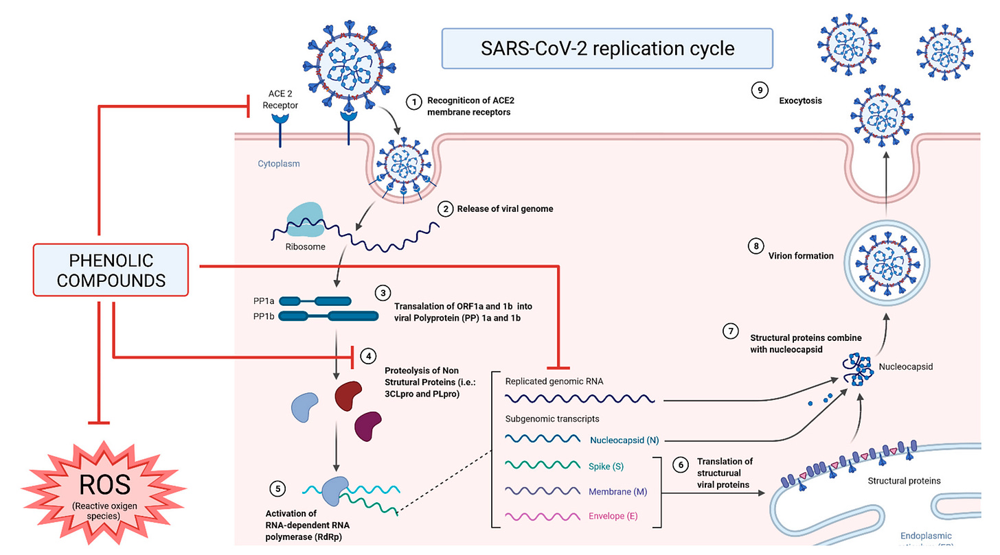 Additionally, there are phenolic compounds which prevent the virus from replicating. Obviously, this also limits the amount of Spike an individual is exposed to during infection.