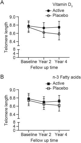 Vitamin D3 and marine ω-3 fatty acids supplementation and leukocyte telomere length: 4-year findings from the VITamin D and OmegA-3 TriaL (VITAL) randomized controlled trial