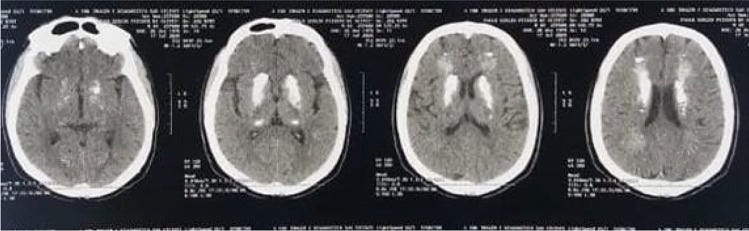Brain CT showing bilateral brain calcifications