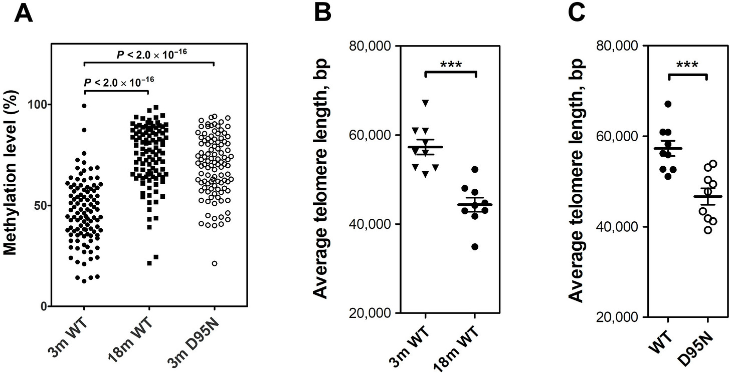 In humans, numerous CpG sites show DNA methylation patterns that change with age and retrospective analysis of longitudinal cohort studies have indicated that premature changes in DNA methylation–correlated molecular aging patterns coincide with a significantly increased risk of overall mortality.